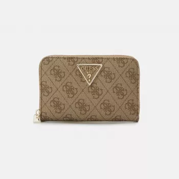 GUESS Women’s Printed Zip Wallet – Beige Compact Organizer