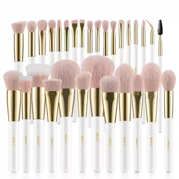 Premium 30-Piece White & Gold Makeup Brush Set