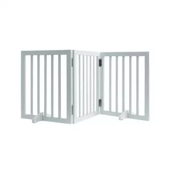 Freestanding Foldable Dog Gate – 3 Panel Wooden Pet Barrier for Doorways & Stairs